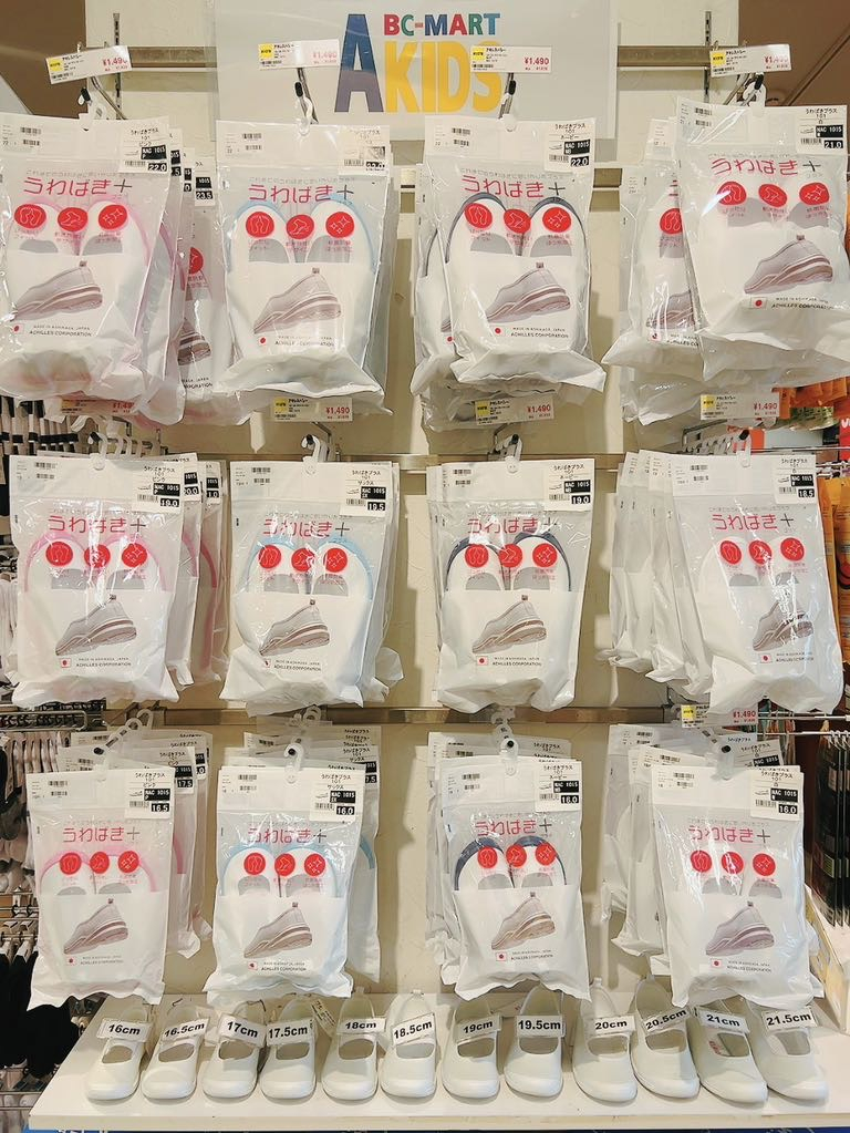 こんにちは! 2F ABC-MART です♪ 意外とご存知ない方もいらっしゃるかと思いますが、 ABC-MARTでは上履きのお取り扱いがございます(*^^*) 屈曲性が良く、撥水、抗菌加工が施してある 丈夫でとっても優秀な上履きなんです☆ カラーはホワイト、ピンク、サックス、ネイビー の4色展開、サイズは16~24㎝(ハーフサイズあり) と豊富にご用意しております!! 小学生必須アイテム、ご入用の際は是非お越しくださいませ♪ アキレスバレー 16-24ウワバキ+101 ¥1,639(税込)
