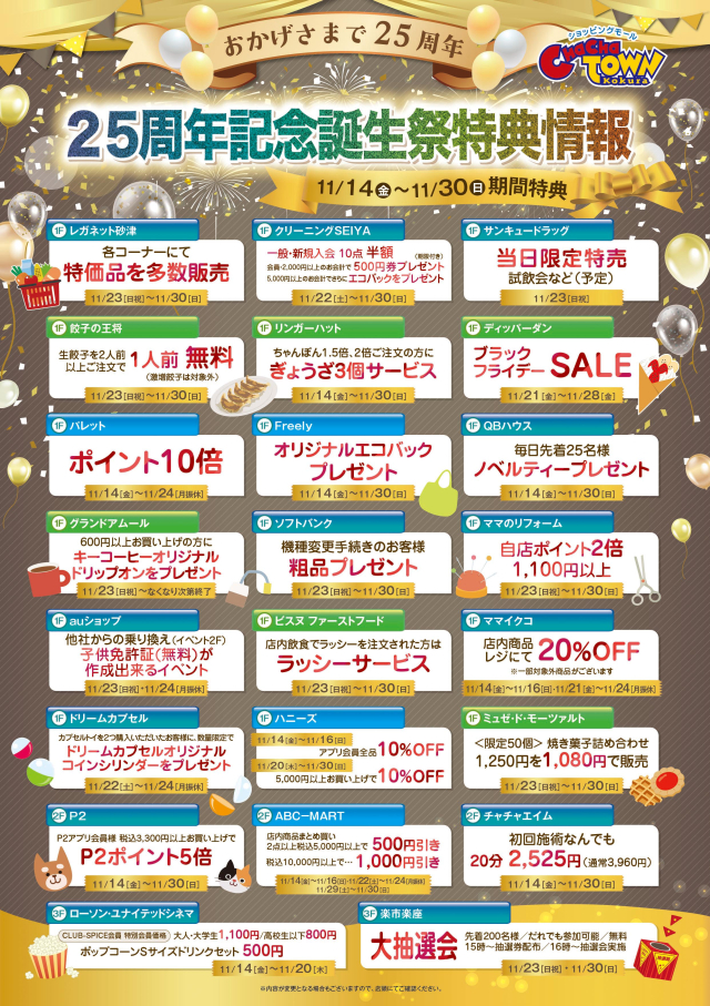チャチャタウン小倉は、11月23日で25周年を迎えます。