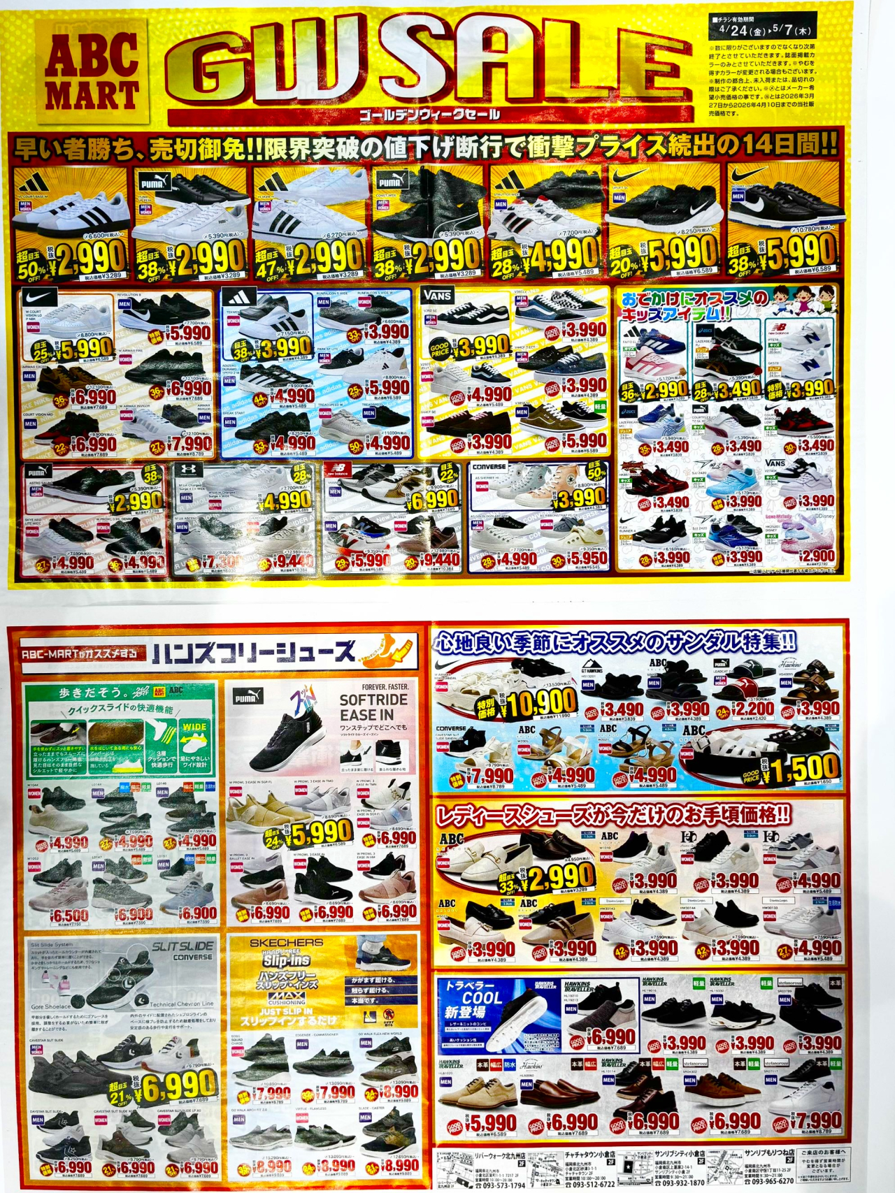 こんにちは! 2F ABC-MART です♪ 4/24(金)~5/7(木) 本日より、ABC-MARTではGWセールを開催しております!! 期間限定☆特別価格商品を多数ご用意しておりますよ~♪ 欲しかったあの商品が、お買得になっているかも…? 皆様のご来店、スタッフ一同心よりお待ちしております(*^^*)